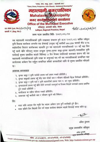 कृषि शाखाको सुचना प्रकाशित मिति २०८२/०६/२८