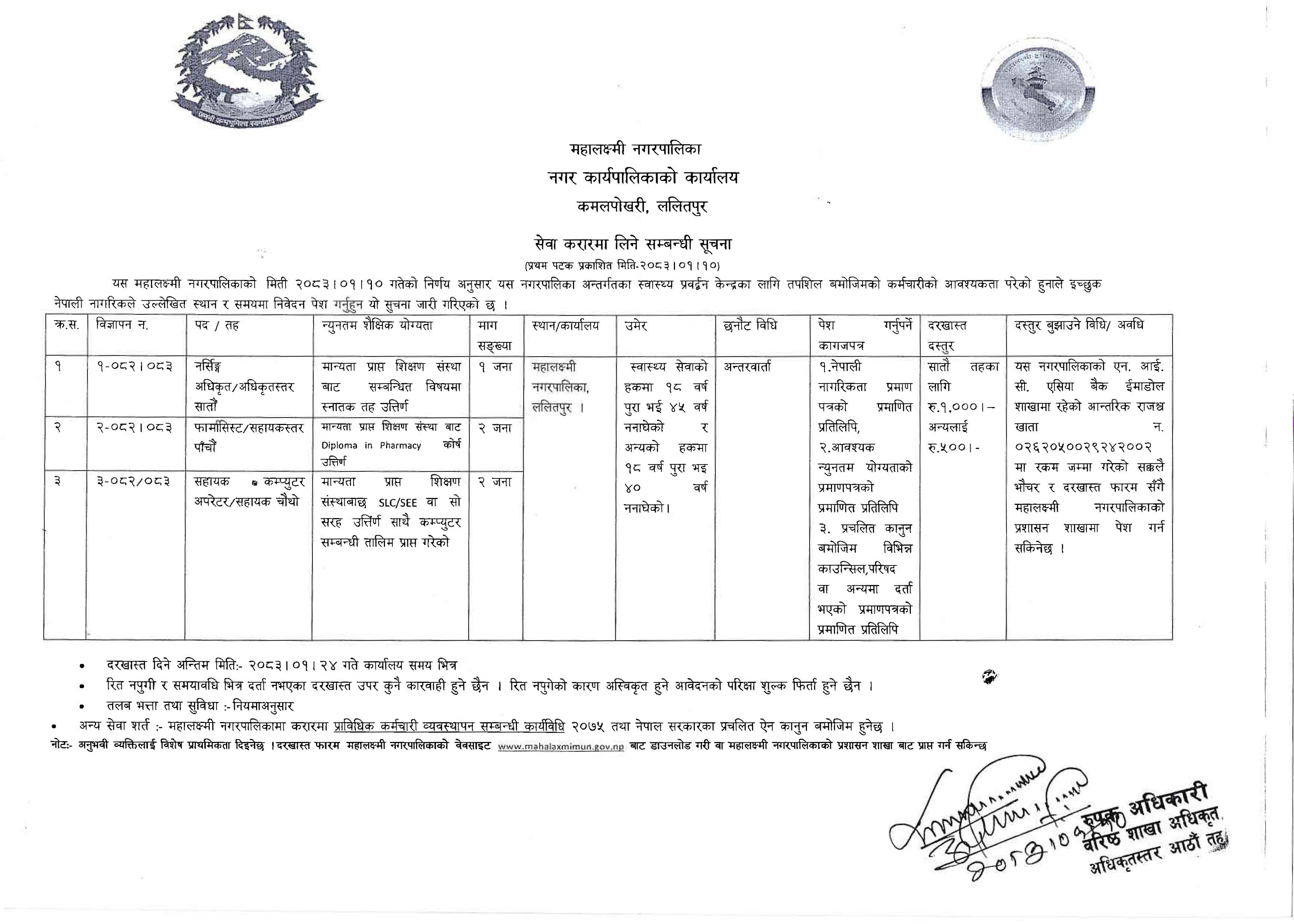 सेवा करारमा लिने सम्बन्धि सूचना प्रकाशित मिति २०८३/०१/०१०