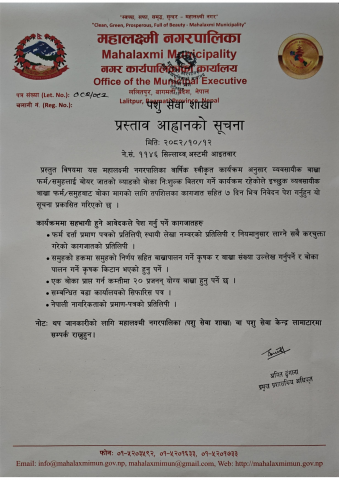 प्रस्ताव आव्हान सम्बन्धी सुचना प्रकाशित मिति २०८२/१०/१२