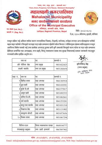 महालक्ष्मी नगरपालिकाका कर्मचारीहरूको सम्पर्क विवरण