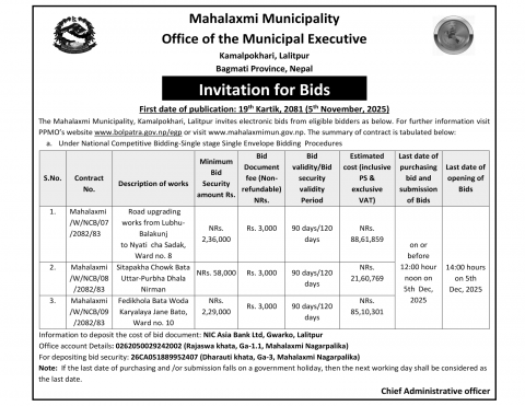 about Invitation for BIDS First date of Publication : 5th November 2025