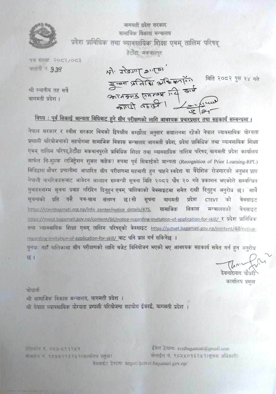 पुर्व सिकाई मान्यता विधि सम्बन्धी सूचना