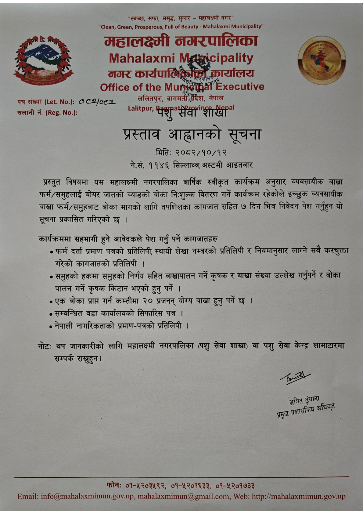 “Clean, Green, Prosperous, Full of Beauty-Mahalaxmi Municipality”