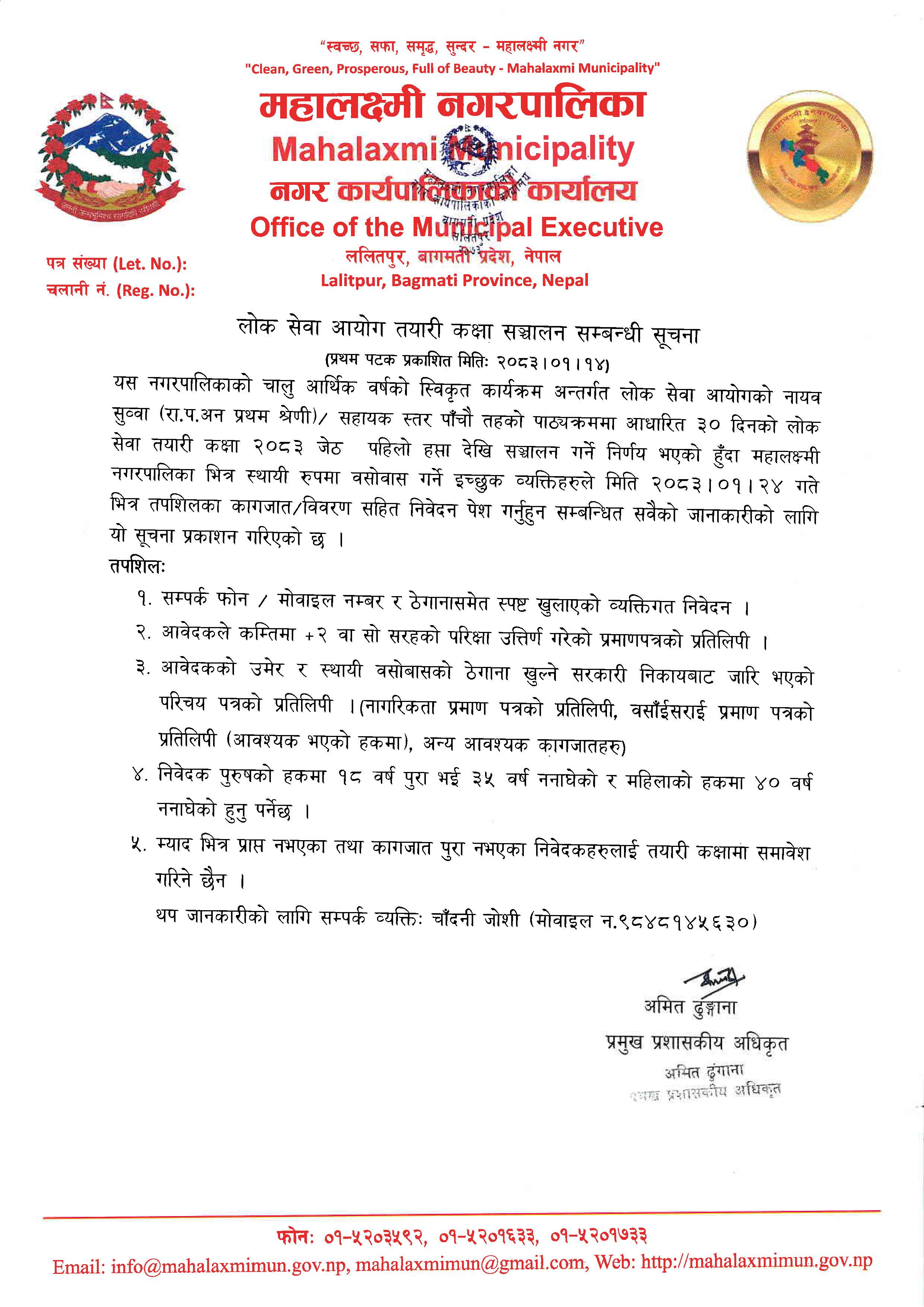 “Clean, Green, Prosperous, Full of Beauty-Mahalaxmi Municipality”