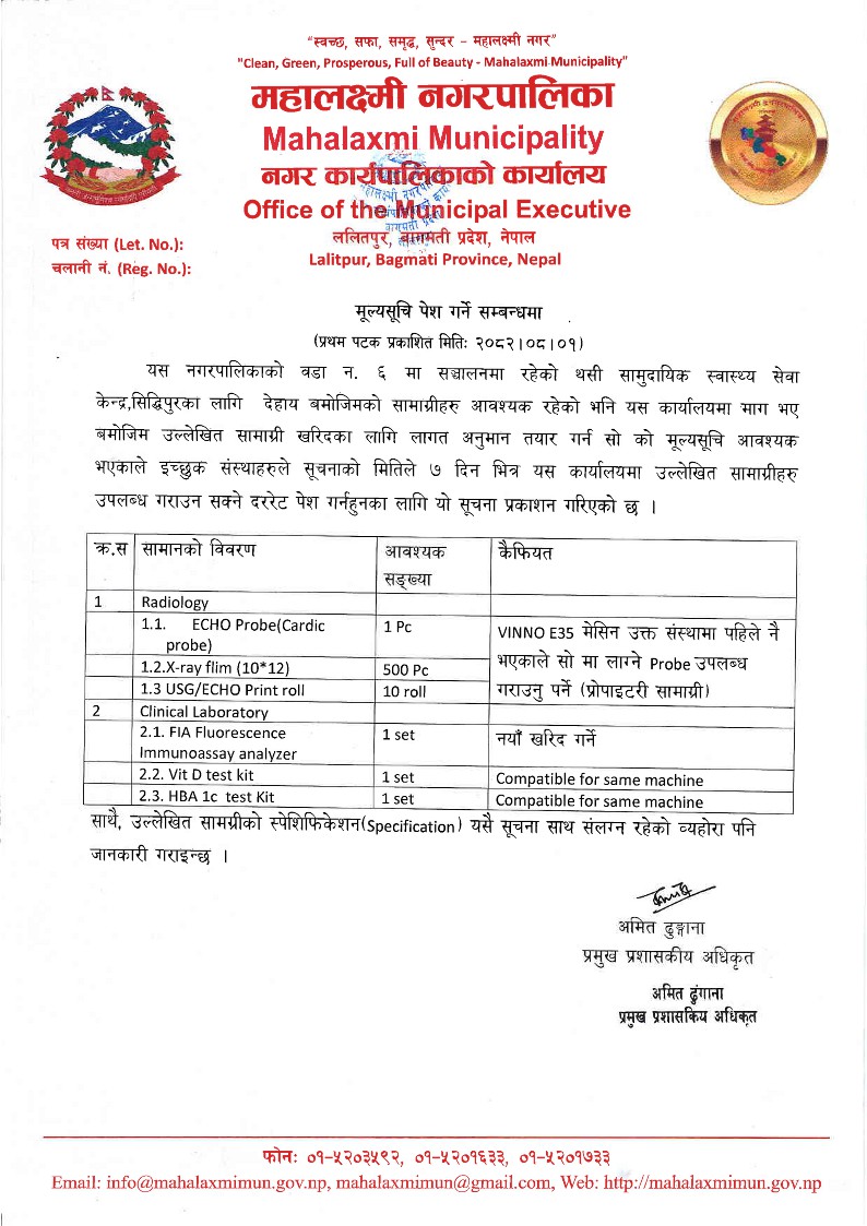 महालक्ष्मी नगरपालिकाका कर्मचारीहरूको सम्पर्क विवरण