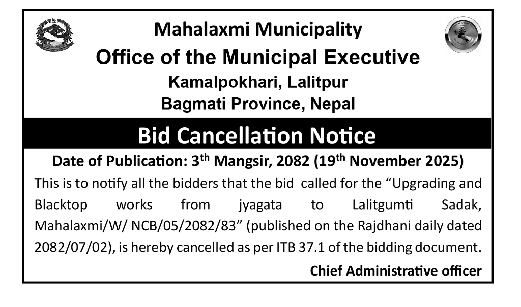 Bid Cancellation Notice Date of Publication : 19th Nov 2025