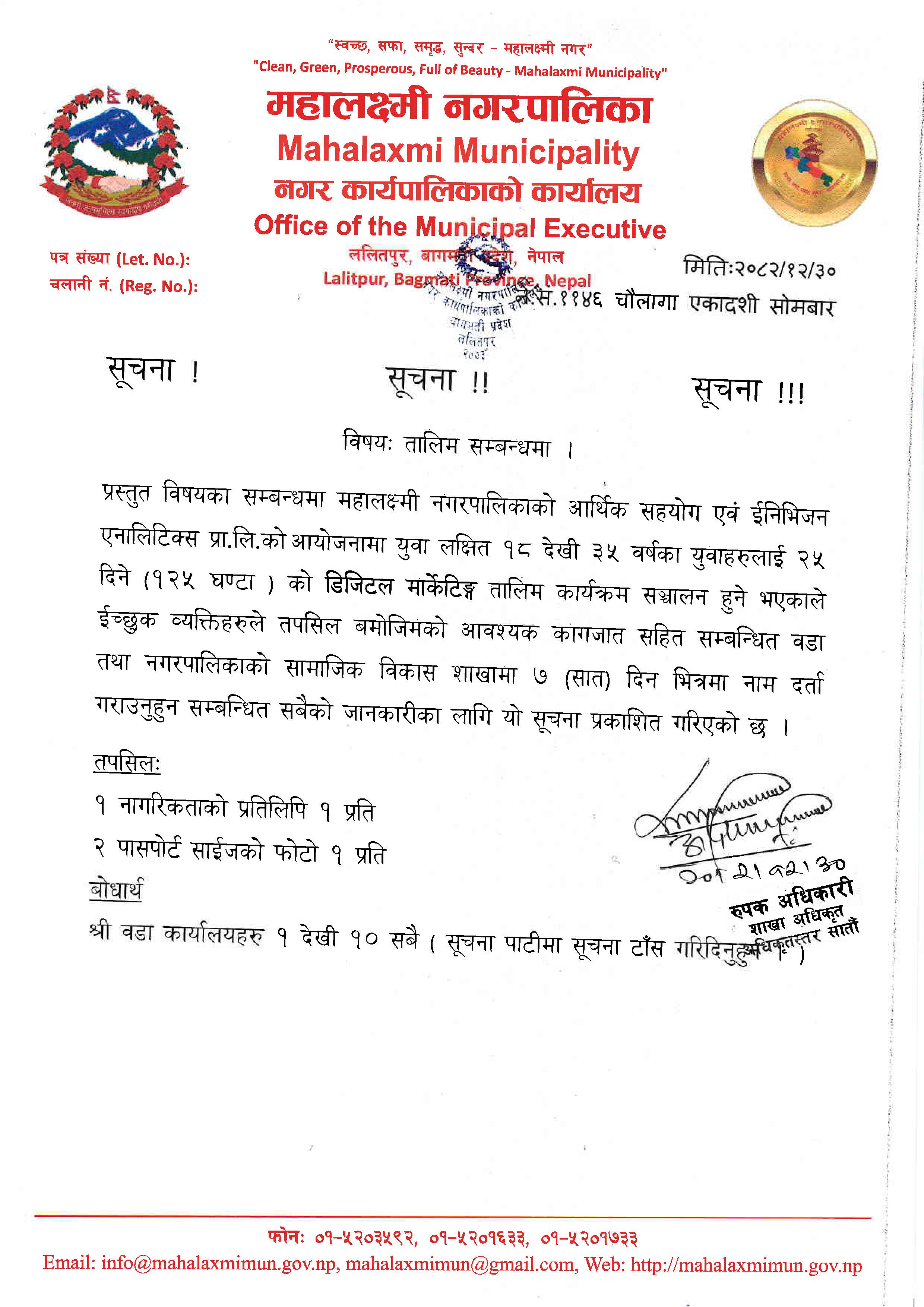 Digital Marketing तालिम सम्बन्धि सुचना प्रकाशित मिति २०८२/१२/३०